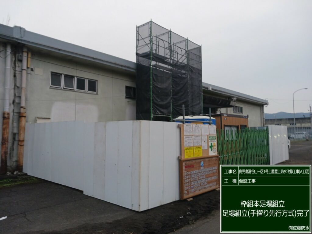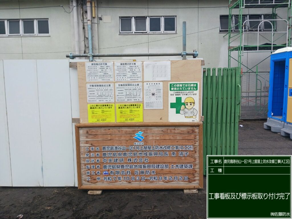 足場と仮囲いの設置、工事看板設置も完了し、いよいよ工事着手です!!!